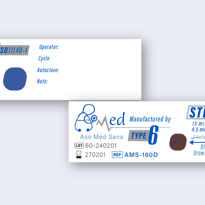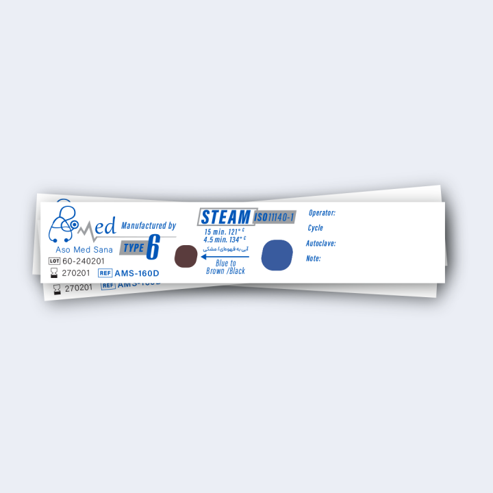 ایـن نوع اندیکاتورها با بالاترین میزان دقت در عملکرد در شـرایط کامـلا صحیح استریلیزاسـیون بخـار، از آبی بـه قهـوه ای تغییـر رنـگ کامـل مـی دهـد و اگر چنانچه به رنگ تیره تر تغییر رنگ دهد می تواند نشان دهنده عدم کالیبراسیون صحیح دستگاه های استریلایزر باشد. پشت چسبدار بودن و قابلیت درج اطلاعات جهت مستندسازی بهتر از دیگر ویژگی های این نوع محصول می باشد.